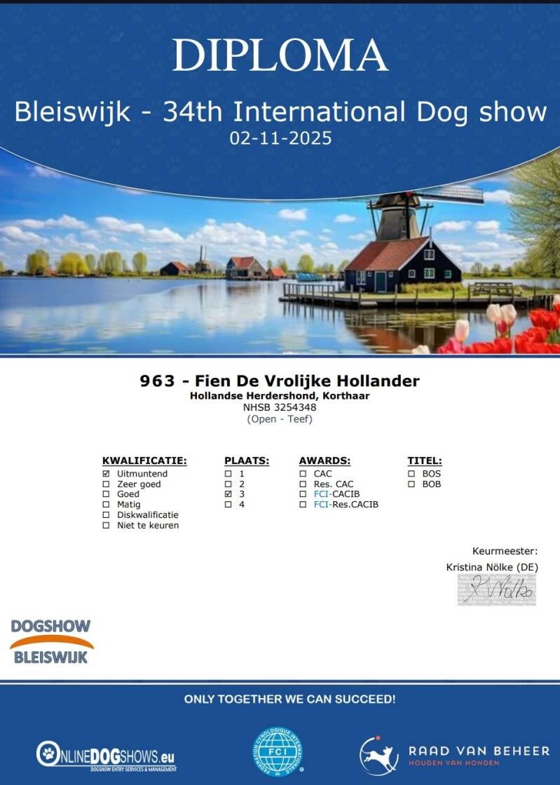 Na een succesvolle dekking tussen Astor van de Kraatshoeve X Fien de Vrolijke Hollander verwachten wij rond 20 december 2025 puppy's. U kunt nog op de lijst.
